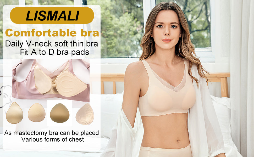 This bra Dual Purpose as a Daily Bra Bralette with a Removable Pad for women of all ages; With high elasticity and Wide Opening Pockets soft and breathable are used for breast reconstruction after mastectomies and placed light Breast prosthetics, breast forms, artificial Fake boobs for example triangular, teardrop, spiral, Lengthened, etc.
