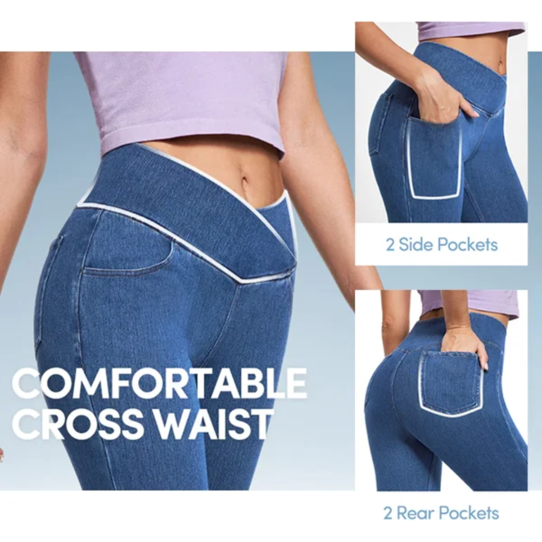 These flare leggings with crossover V-shaped Waistband, making it more sexy, flattering and stylish!