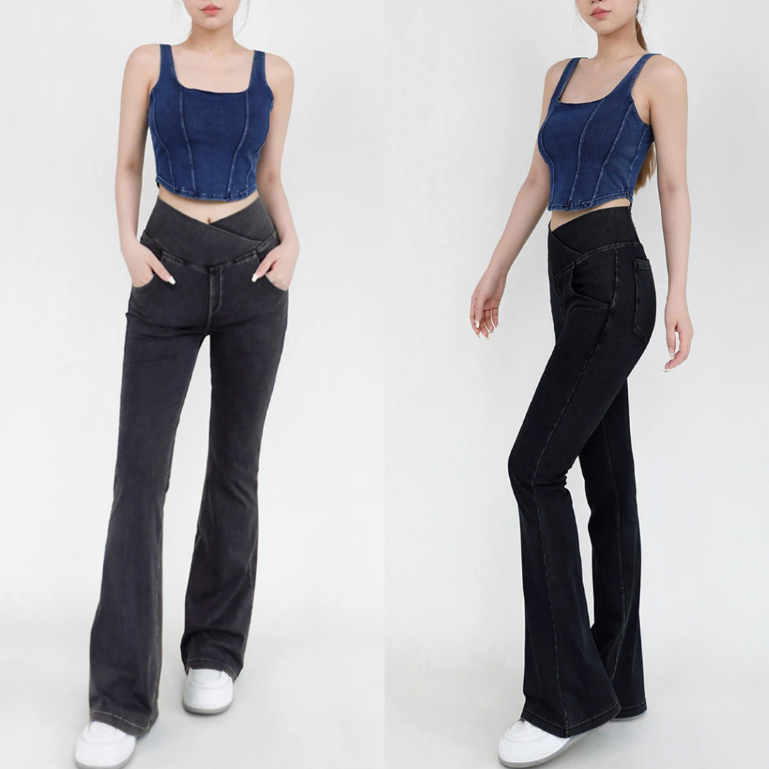 Get curves that turn heads! Super-high rise, slim leg, and the perfect flare! Designed to flaunt your curves with extra room in all the right places.