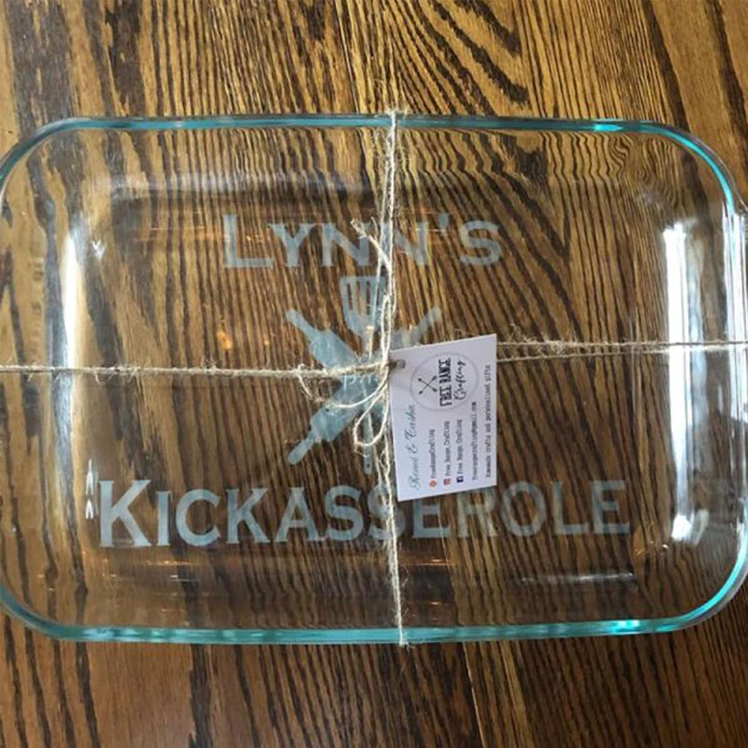This personalized glass baking dish, thanks to the etching process used on the bottom, the pyrex baking dish can be permanently preserved even through cooking and washing.