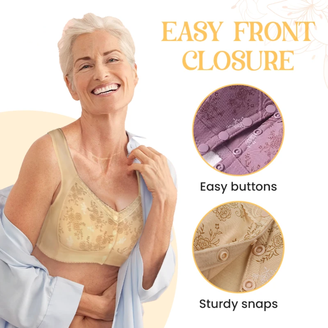 Lismali Rose Bra Wireless Front Button Bras Large Size For Women